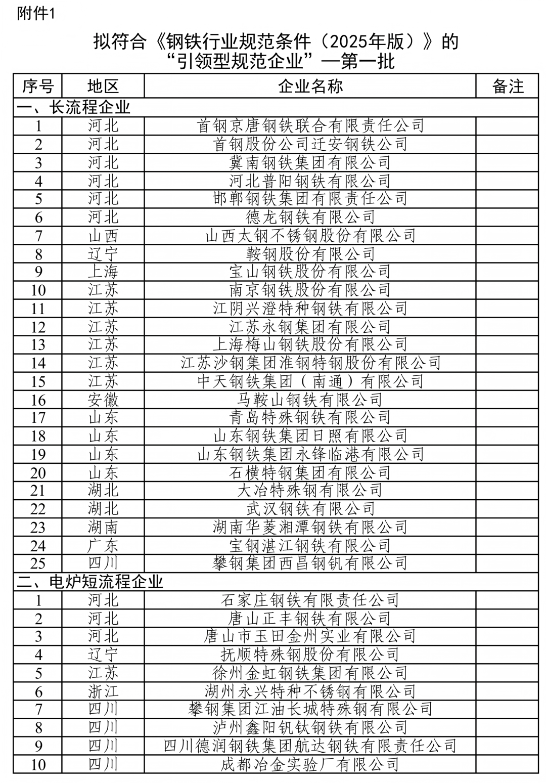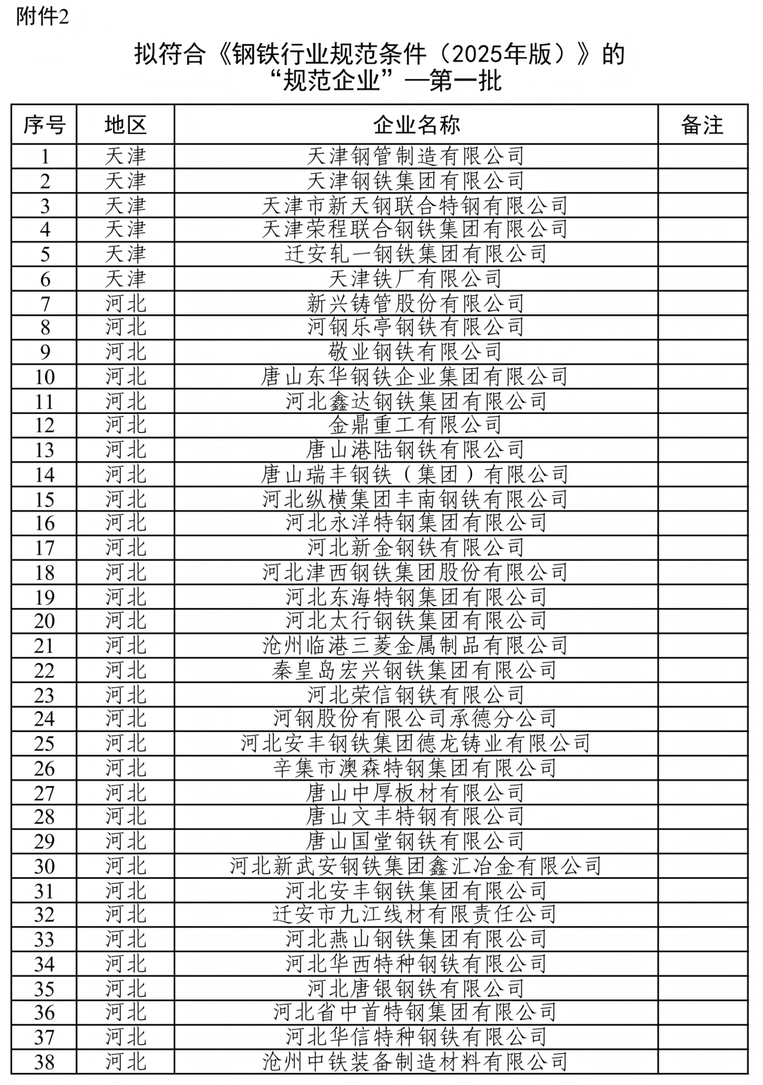 2.擬符合《鋼鐵行業(yè)規(guī)范條件(2025年版)》的“規(guī)范企業(yè)”-第一批