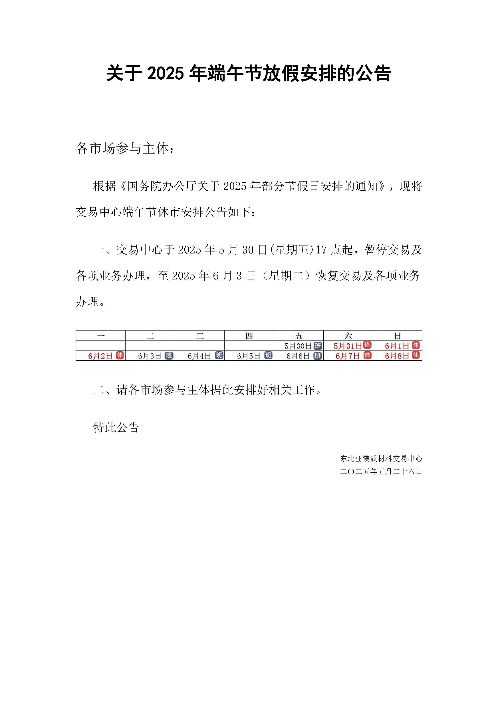 關(guān)于2025年端午節(jié)放假安排的公告